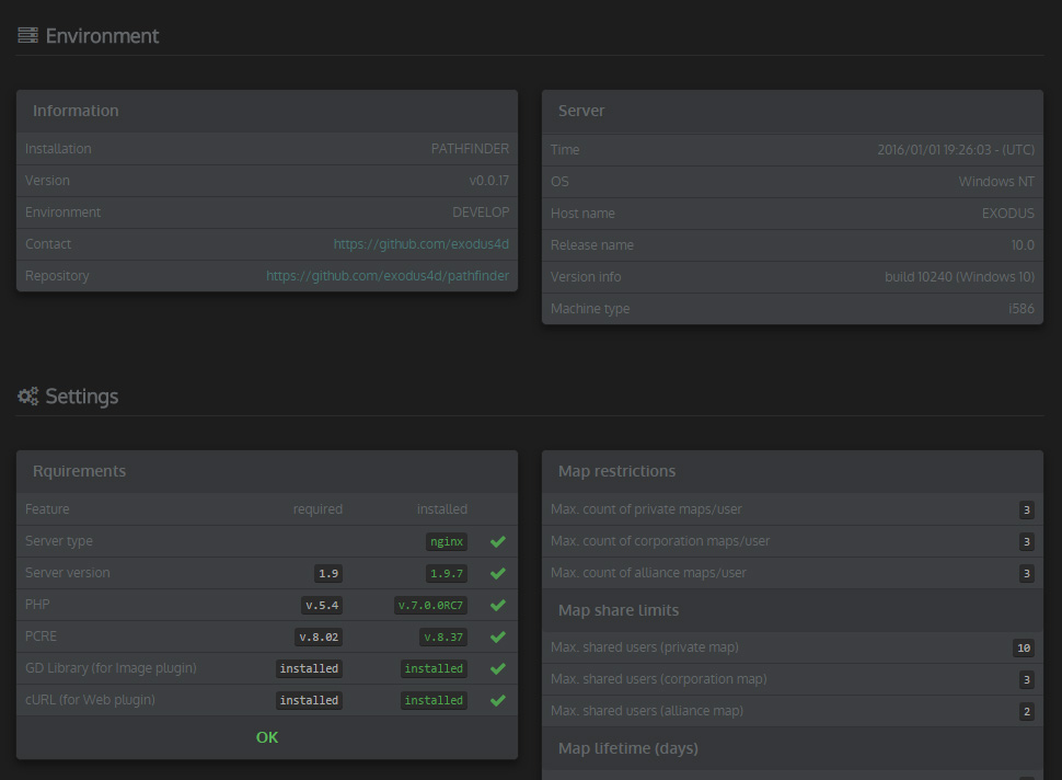 If you are planning to get deeper into the project or even think about hosting it on your own webserver, you should be aware of some important key points. Pathfinder is not comparable with any "out of the box" web applications or common CMS systems that come along with an auto-install feature. If you don´t have any experience with the following technologies, stop thinking about your own hosted Pathfinder app.